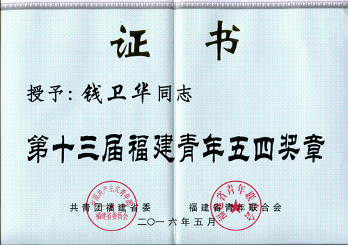 錢衛(wèi)華博士榮獲第十三屆“福建青年五四獎?wù)隆?/DIV>