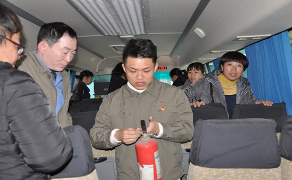 首先由大巴車駕駛員講解大巴應(yīng)急門、車頂窗的開啟方法、安全錘的使用方法及滅火器擺放位置,然后由環(huán)安部安全員講解滅火器的操作及使用規(guī)范和后窗玻璃逃生方法。現(xiàn)場(chǎng)演練模擬公司通勤廠車因故障著火并迅速蔓延,車廂內(nèi)濃煙滾滾,車門因電氣故障無法打開,大巴駕駛員立即打開應(yīng)急車門,組織乘車員工有序撤離,同時(shí)向綜合部主管報(bào)告事故情況。綜合部主管判斷現(xiàn)場(chǎng)情況后,立即啟動(dòng)《綜合應(yīng)急預(yù)案》,組織各應(yīng)急救援小組立即趕赴現(xiàn)場(chǎng),展開應(yīng)急響應(yīng)。