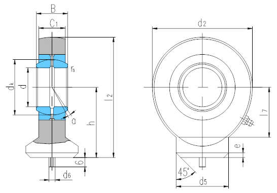產品特點:焊接型桿端關節軸承由桿端體和向心關節軸承GE…E或GE…ES組裝而成,桿端體材料是易焊接鋼,桿端柄部裝有彈性銷,便于焊接時定位;可通過油杯或桿端眼孔潤滑。