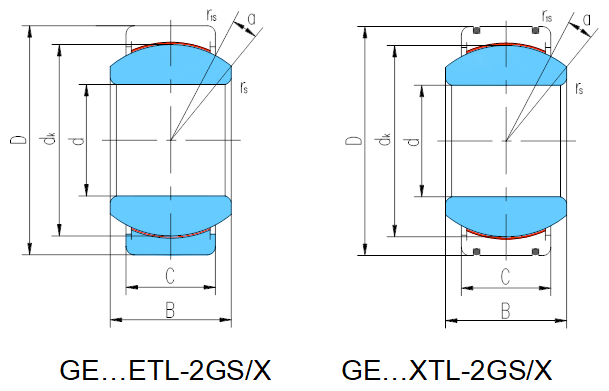 產(chǎn)品特點(diǎn):外圈有一道軸向縫,材料為不銹鋼,淬火,球面粘貼PTFE編織物;內(nèi)圈材料為不銹鋼,淬火。型號(hào)后置代號(hào)為XT,表示外圈沿軸向剖分成兩半,用鎖圈固定。