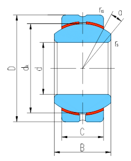 產品特點:外圈材料為碳鋼,鑲有青銅襯墊;內圈材料為軸承鋼,淬火,球面鍍硬鉻。