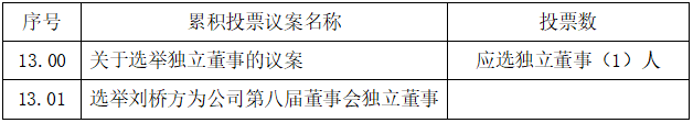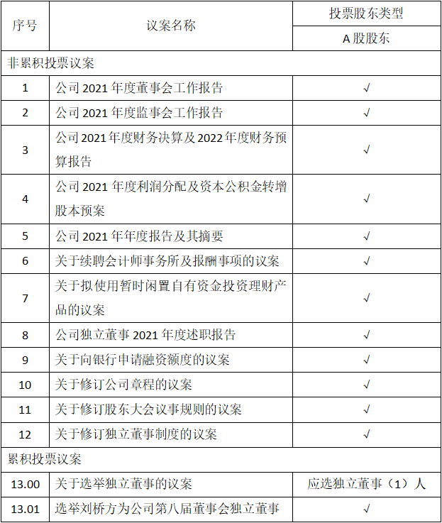 一、股東大會董事候選人選舉、獨(dú)立董事候選人選舉、監(jiān)事會候選人選舉作為議案組分別進(jìn)行編號。投資者應(yīng)針對各議案組下每位候選人進(jìn)行投票。