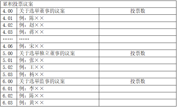 (六)采用累積投票制選舉董事、獨(dú)立董事和監(jiān)事的投票方式,詳見附件2