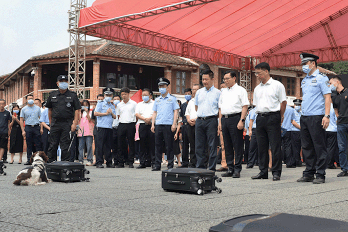 緝毒犬查緝表演區(qū)緝毒犬現場表演查緝快遞中隱藏的毒品,展示了緝毒犬精準查毒技巧,貼近實戰(zhàn)形式,吸引過往群眾駐足觀看。