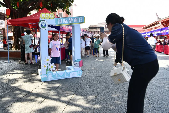 拍照打卡區(qū)現場設立具有禁毒元素的立體拍照打卡框,吸引了不少群眾發(fā)揮創(chuàng)意、拍照打卡。