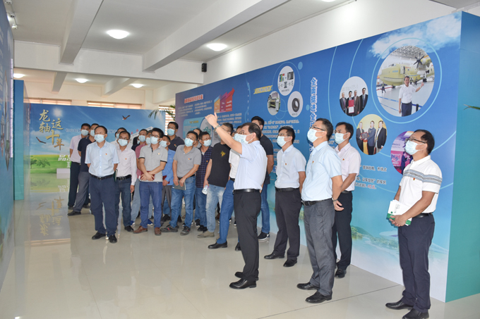 2022年10月17日,龍軸集團黨委書記、董事長陳晉輝帶領(lǐng)公司高管,在漳各黨總支、黨支部負責人觀看“龍軸這十年——初心如磐存高遠,循脈向前展宏圖”成就展。