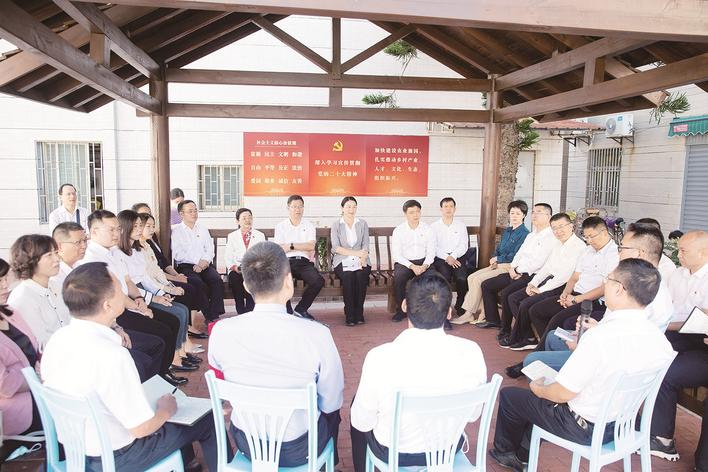 坐在同一條板凳上說話,與干部群眾面對面交流。市領(lǐng)導娓娓講述道,21年前的夏天,也就是2001年7月15日,在澳角村村民郭漢棟的小樓里,時任村黨支部書記的林亞民向時任福建省省長的習近平介紹“澳角村已從‘三不起’蛻變?yōu)椤目础保敃r習近平同志描繪起新的小康藍圖,說“以后農(nóng)村的政策會一年比一年好”。今天,大家很高興來到澳角村,一起追尋習近平總書記的足跡,學習宣傳貫徹黨的二十大精神。