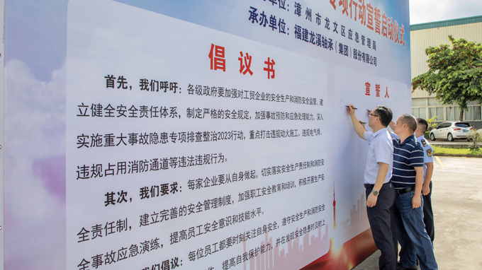 陳志雄首先帶領全體參加人員宣讀《全市工貿企業“暢通綠色生命通道”倡議書》,進行安全宣誓,并開展“暢通綠色生命通道”專項行動簽名活動。