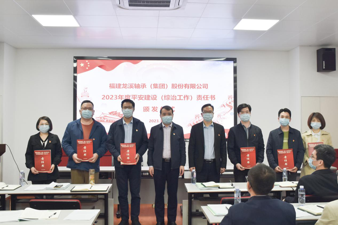 2023年3月16日,龍軸集團(tuán)舉行平安建設(shè)(綜治工作)責(zé)任書簽訂頒發(fā)儀式。公司黨委書記、董事長(zhǎng)陳晉輝,黨委副書記劉明福分別與在漳權(quán)屬企業(yè)和各部門、車間負(fù)責(zé)人簽訂責(zé)任書,陳晉輝和公司黨委副書記、總經(jīng)理陳志雄一同頒發(fā)責(zé)任書。
