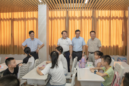 2022年7月26日下午,集團(tuán)黨委書記、董事長(zhǎng)陳晉輝帶隊(duì)前往漳州學(xué)達(dá)教育集團(tuán)有限公司看望關(guān)心龍軸集團(tuán)職工子女,了解龍軸集團(tuán)暑托班的開展情況,現(xiàn)場(chǎng)檢查孩子們的學(xué)習(xí)、午休環(huán)境,為孩子們和老師們送上一份禮物,并帶去組織的關(guān)懷。集團(tuán)黨委副書記、總經(jīng)理陳志雄,黨委委員、常務(wù)副總經(jīng)理鄭長(zhǎng)虹,黨委副書記、工會(huì)主席劉明福及集團(tuán)工會(huì)、綜合部相關(guān)人員陪同。