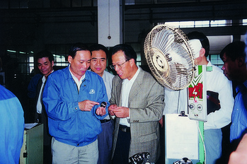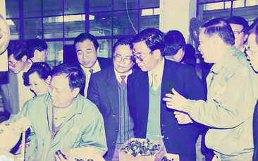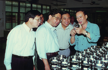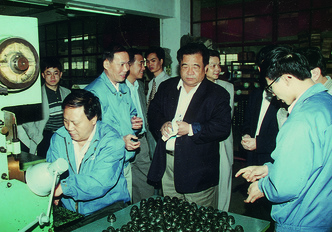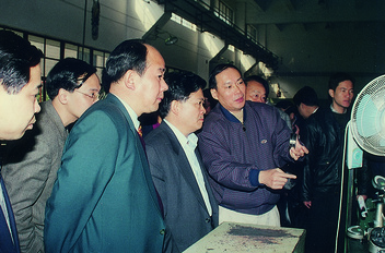 1997年6月6日,陳文釗(時(shí)任福建省機(jī)械廳廳長(zhǎng),左二)視察龍軸