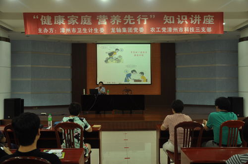 黨漳州市科技三支部特別邀請漳州衛生職業學院林斌松副教授舉辦“健康家庭  營養先行”知識講座。漳州市衛生計生委人口和家庭公共服務中心主任吳荊華,集團黨委委員、副總經理康安偉同集團員工一起聆聽了講座。