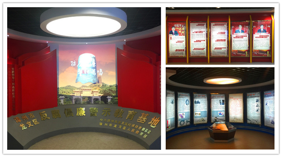 ????警示教育基地分為“諄諄教誨”、“黨紀國法”、“反腐鑒錄”、“源頭防范”四大主題展區。以豐富翔實的文字和圖片資料,采用現代聲、光、電技術手段,系統展示了反腐倡廉建設的歷史進程。其中,“諄諄教誨”展區展示了黨和國家領導人提出的黨風廉政建設的重要思想和論斷,為反腐工作指明了方向;“反腐鑒錄”展區呈現的是 “打虎拍蠅”的成果。從周永康、周本順、蔣潔敏等倒下的“老虎”,到漳州市的貪腐人員莊水秋、嚴玉杰等打掉的“蒼蠅”, 既反映了近年來懲治腐敗的豐碩成果,也彰顯了重拳反腐的堅強決心。同時通過從古至今正面廉政先進人物事跡展示,與貪腐人員形成強烈對比,更加令人警醒。最后的“源頭防范”展區,以柴米油鹽醬醋茶比喻預防職務犯罪七件事,警示廣大黨員干部防微杜漸,勿因貪婪而迷失初心。