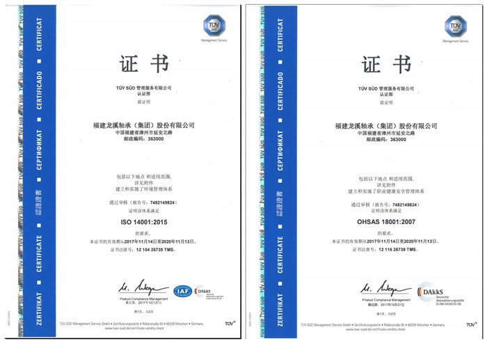 ????2017年9月18日至22日,南德認證檢測(中國)有限公司上海分公司專家組依據ISO 14001:2015、OHSAS 18001:2007要求對公司總部和華安分現場進行了環境、職業健康安全管理體系現場監督審核。2017年11月初,我司順利取得南德認證檢測(中國)有限公司頒發的ISO 14001:2015、OHSAS 18001:2007體系證書。