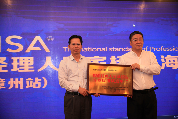 ????2017年11月10日,由國務院國資委所屬職業經理研究中心指導,漳州市委組織部、漳州市國資委主辦,公司協辦的“職業經理人國家標準”海西行首站在漳州舉行。國務院國資委所屬職業經理研究中心主任助理、全國職業經理人考試測評標準化技術委員會副秘長王新偉做了以《職業經理人國家標準應用及職業經理人培養和隊伍建設》為主題的演講。隨后舉行了授牌儀式,王新偉代表國務院國資委所屬職業經理研究中心為公司“職業經理人國家標準宣貫應用試點單位”授牌。