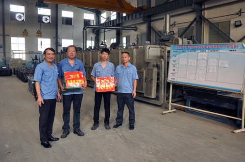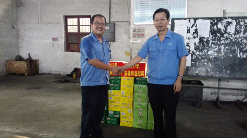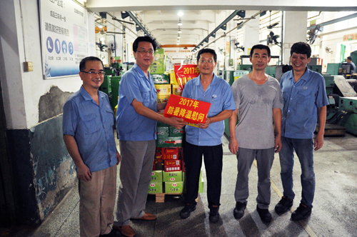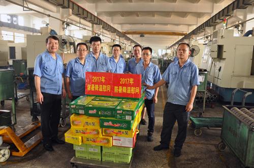 ????2017年8月21日下午,公司黨委書記董事長曾凡沛、總經理陳晉輝、副總經理張逸青、工會主席康安偉一行前往金田公司鍛工車間、車工一車間、車工二車間、成品五車間、熱處理車間等生產現場慰問堅守崗位的職工,并送去涼茶、菊花茶、冬瓜茶等防暑降溫物品,讓他們在炎炎夏日中感受到陣陣清涼。