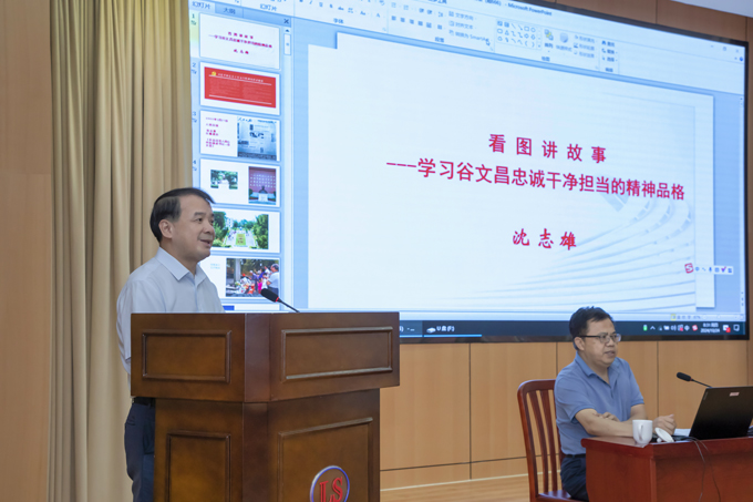 沈志雄老師圍繞“忠誠是谷文昌精神品格最厚重的基石”“干凈是谷文昌精神品格最自然的底色”“擔(dān)當(dāng)是谷文昌精神品格最耀眼的華章”三個方面系統(tǒng)講述了谷文昌同志生平事跡,通過一幅幅珍貴的影像資料和一個個生動的事例,大家更全面地理解谷文昌精神品格的內(nèi)涵,受到了深刻的精神洗禮。
