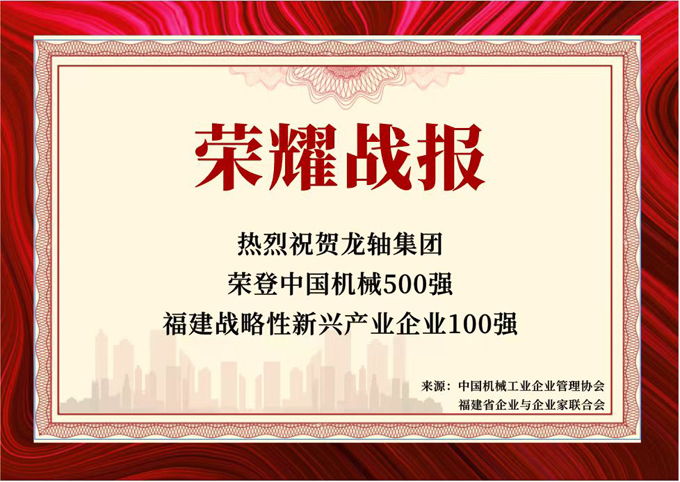 公司以雄厚的規(guī)模力、出色的效率力、強大的成長力和豐富的資源力再度獲評中國機械500強、福建戰(zhàn)略性新興產(chǎn)業(yè)企業(yè)100強,已連續(xù)16年上榜中國機械500強,連續(xù)4年上榜福建戰(zhàn)略性新興產(chǎn)業(yè)企業(yè)100強。