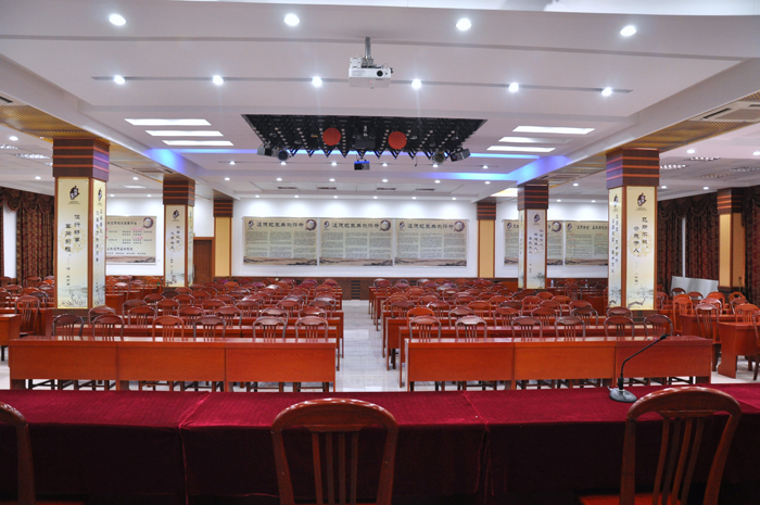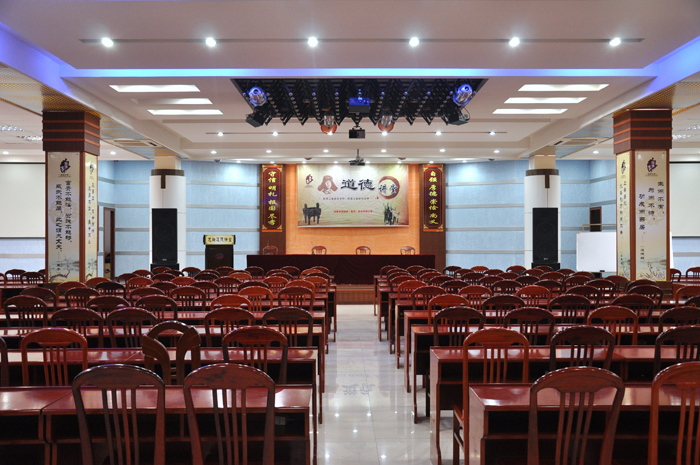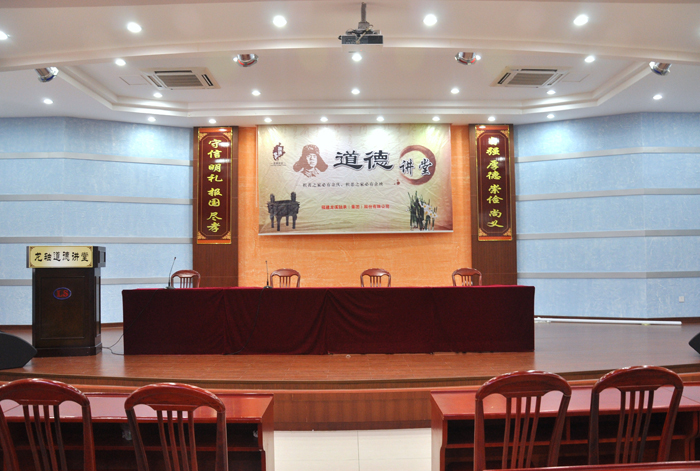 圖2:龍軸道德講堂概貌,前視,講臺背景為市文明委統(tǒng)一設計