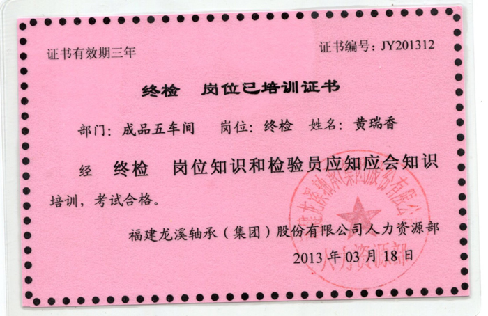 終檢崗位培訓(xùn)證書