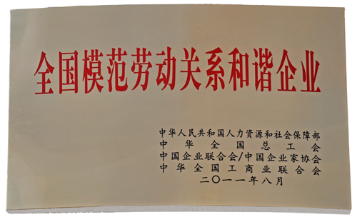 2011年8月15日上午,全國構(gòu)建和諧勞動(dòng)關(guān)系先進(jìn)表彰暨經(jīng)驗(yàn)交流會(huì)在北京人民大會(huì)堂隆重舉行。中共中央政治局常委、中央書記處書記、國家副主席習(xí)近平等領(lǐng)導(dǎo)同志出席大會(huì)并為獲獎(jiǎng)單位頒獎(jiǎng)。作為漳州市唯一獲得“全國模范勞動(dòng)關(guān)系和諧企業(yè)”的企業(yè),公司黨委副書記張?zhí)┥砉緯x京接受表彰。