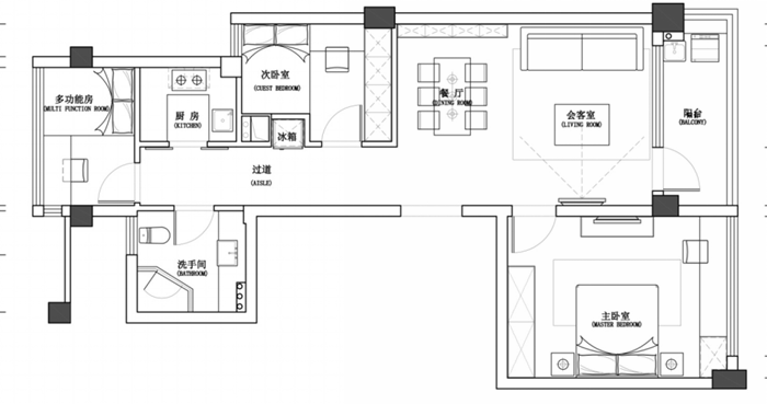 缺點(diǎn):主臥儲(chǔ)物功能一般,外部儲(chǔ)藏空間欠缺,動(dòng)靜區(qū)分不明確,需做改動(dòng)增加空間功能性。