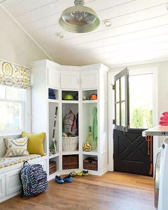 臥室或者是玄關附近位置的尷尬角落,放一個轉角式的置物柜會是個不錯的做法。安裝在入門位置的話,運動用品、健身背包、書包、遛狗繩之類的,可以全部都集中在這個位置,干凈整齊。至于臥室里,則是衣柜的延伸,但只適合家里面積比較大,看起來有點空蕩蕩的家庭。