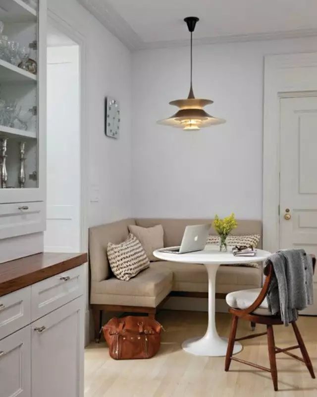 這樣的角落用餐區(qū),應該有不少人會喜歡吧?家里面積小的朋友可以直接用來做吃飯的地方,有充裕空間的朋友這樣來裝飾家里的尷尬角落,也是美觀而實用,在這里與閨蜜們喝喝下午茶,一個人窩在這里玩玩電腦看下雜志也很適合。