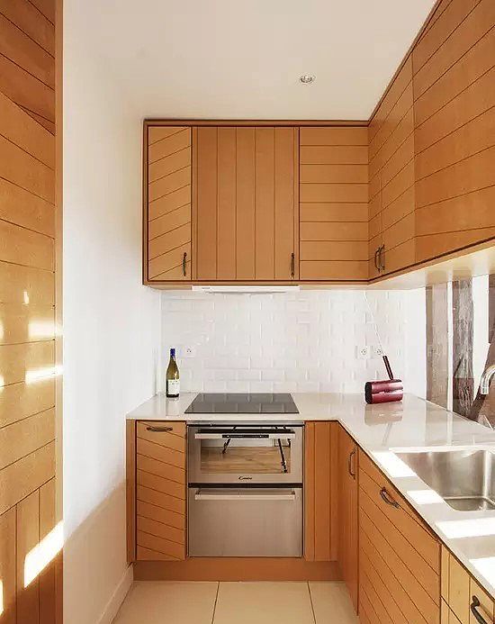 1)一字型:即做菜流程都在一條動線上,只占用一面墻,比較節(jié)省空間。