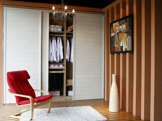 老人房,隔板等疊放衣物的空間要多,而且不宜太高或太低,防止老人踮腳彎腰等,如果有條件的話,衣柜上層可以安裝升降衣架。