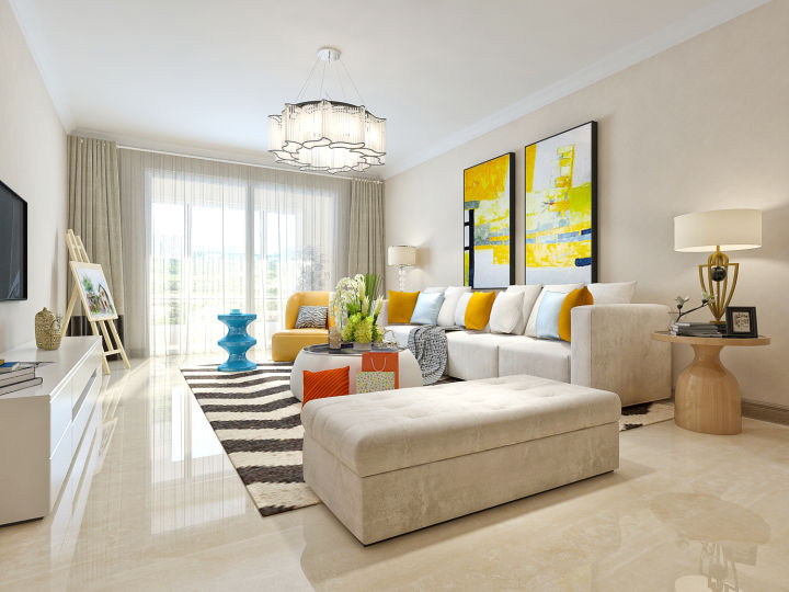 (1)室內(nèi)配色,最好只有一種主色調(diào),然后選一到兩種輔助色對(duì)比色,用來(lái)調(diào)節(jié)客廳的顏色純度和明度的變化,但是對(duì)比色的面積和種類要少,否則顯得又亂又廉價(jià)。