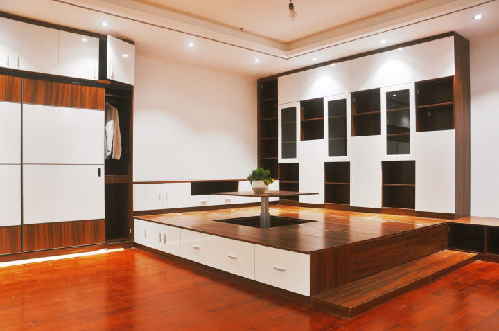 (1)次臥可以做榻榻米,現(xiàn)在的榻榻米基本都是定制,可以卡墻做,不浪費(fèi)空間,榻榻米高度一般在400mm-450mm,內(nèi)部箱體可以用來(lái)存放過(guò)季的被子,衣物等。且榻榻米上面還可以做衣柜書柜等,空間利用率非常高。