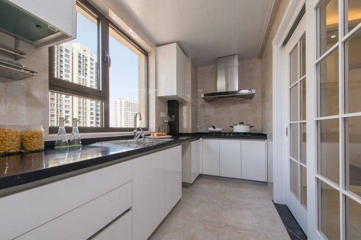 開放式廚房固然美觀,但油煙、收納及整潔性等問(wèn)題是不得不面對(duì)的,不妨考慮安裝玻璃推拉門,透過(guò)玻璃看到家人和自己在一起,做飯也就沒(méi)那么無(wú)聊了,推拉門相對(duì)于平開門而言還可以減少開關(guān)門占用的空間。