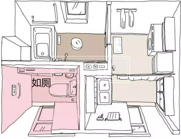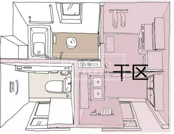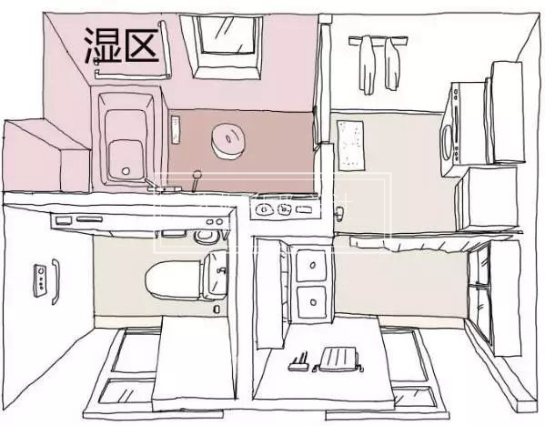 上面所說的干濕分離的三種方式,在實(shí)際運(yùn)用上還是無法完全解決一家人的供需。下圖▼這種將分離做到極致的設(shè)計(jì)是日本最新的設(shè)計(jì)理念,非常的具有人性化和實(shí)用性。