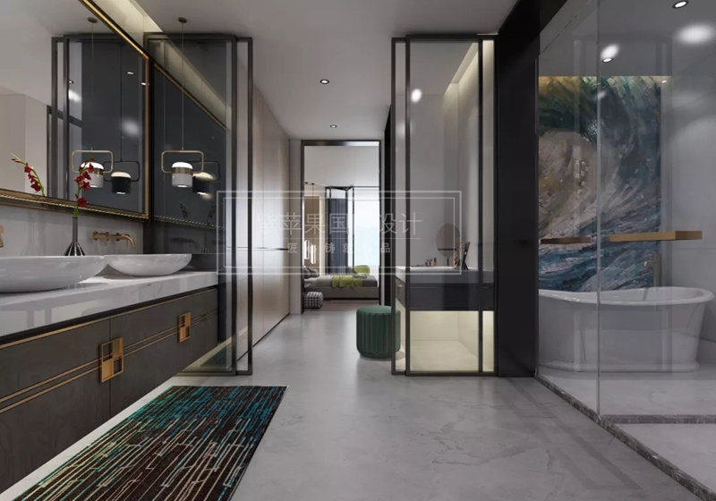 除了是睡覺的地方,設(shè)計師建議最好另外增加更衣室區(qū)域,回歸各自功能需求,記得考慮通風(fēng)與采光。主臥與陽臺之間的玻璃隔斷設(shè)計,阻隔視線不完全的破壞隱私性,還能增加光線接觸區(qū)域。