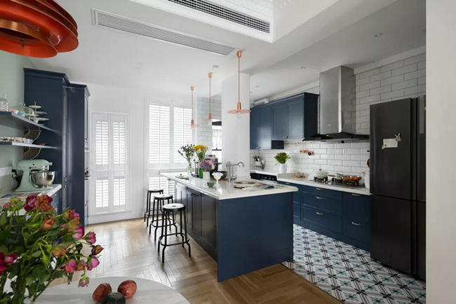 女主人不僅熱愛美食,更愛研究烹飪。所以中西結(jié)合的廚房滿足了同時(shí)擁有做湘菜和西品的愿望。在這個(gè)作品里,廚房就是女主人施展才藝的地方,設(shè)計(jì)把廚房做到盡善盡美,使其在愉悅的心情中完成一道又一道美味佳肴。