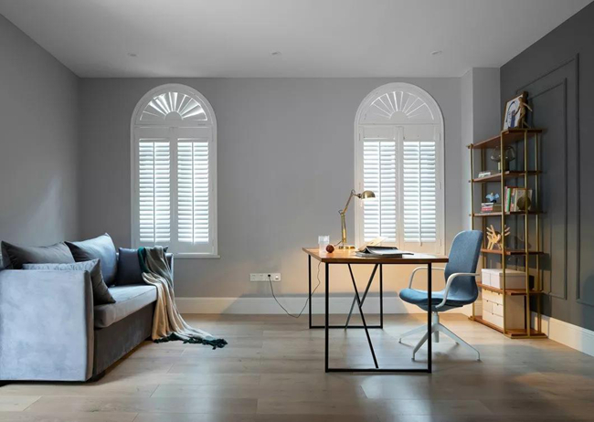 晚上偶爾在這里處理下事務(wù),回復(fù)下朋友發(fā)的郵件,讀完一本休閑的書籍,感受透過(guò)百葉窗的光影,時(shí)間在這里似乎變得慢悠起來(lái),書不多,一架便是夠的了。