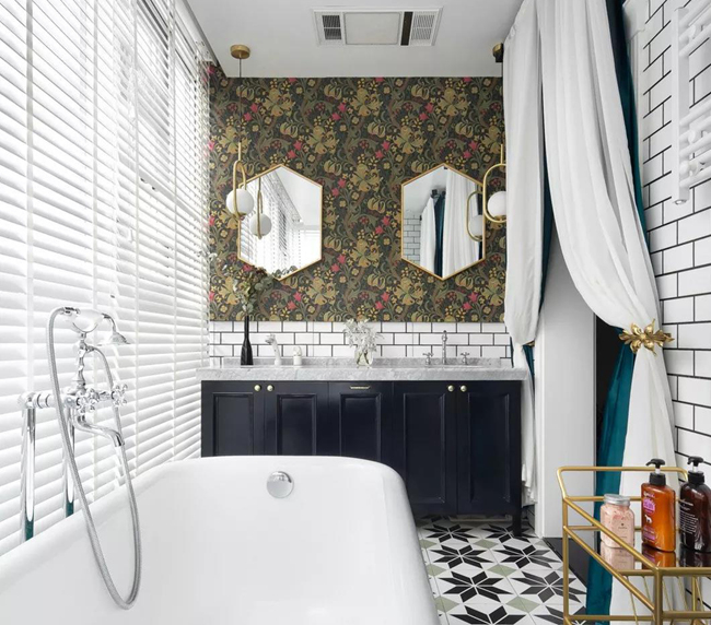 中古的燈具,復(fù)古的浴缸,還有陽(yáng)光穿過(guò)百葉窗留在泡泡上的斑駁身影;來(lái)自雨林的的壁紙,生機(jī)勃勃,一種是來(lái)自對(duì)生活的熱情,一種是對(duì)美的篤定。