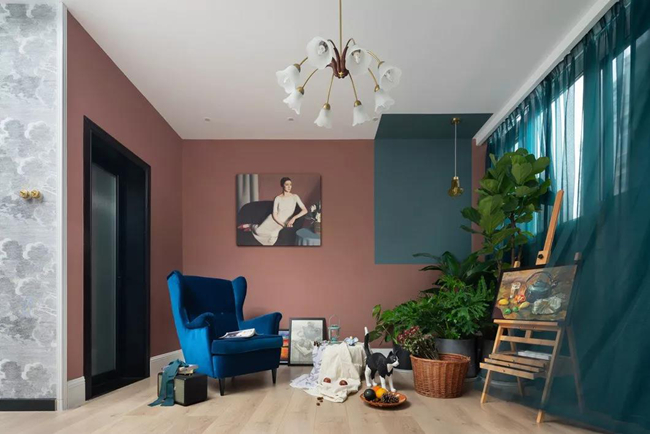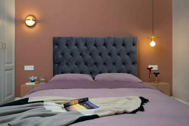 粉色的墻面和溫暖燈芯絨質(zhì)感,柔軟的線條和斑駁搖曳的光影,讓空間在無(wú)形中醞釀了一種悠然、平靜的情緒。