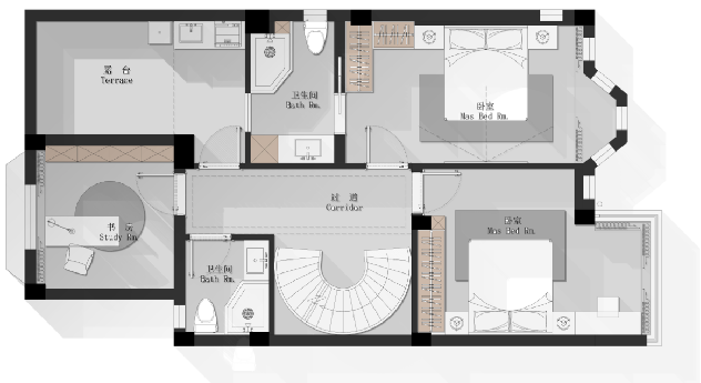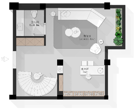 呈現(xiàn)出空間的通透感,讓人身心放松,感受生活的美好與恬靜。地下室的半澆挑空設(shè)計(jì)更是增加與家人之間的親密互動(dòng)。