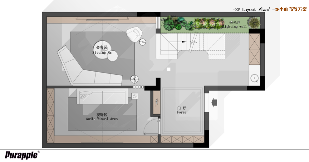 -2F:會(huì)客區(qū),門廳,視聽(tīng)區(qū),水吧【68.2㎡】