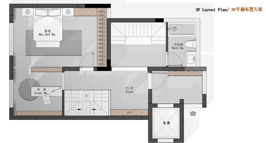3F: 臥室,門廳,書(shū)房,衛(wèi)生間,陽(yáng)臺(tái)【75.3㎡】