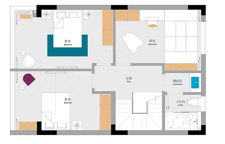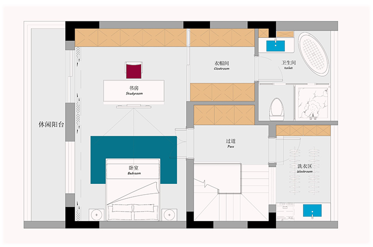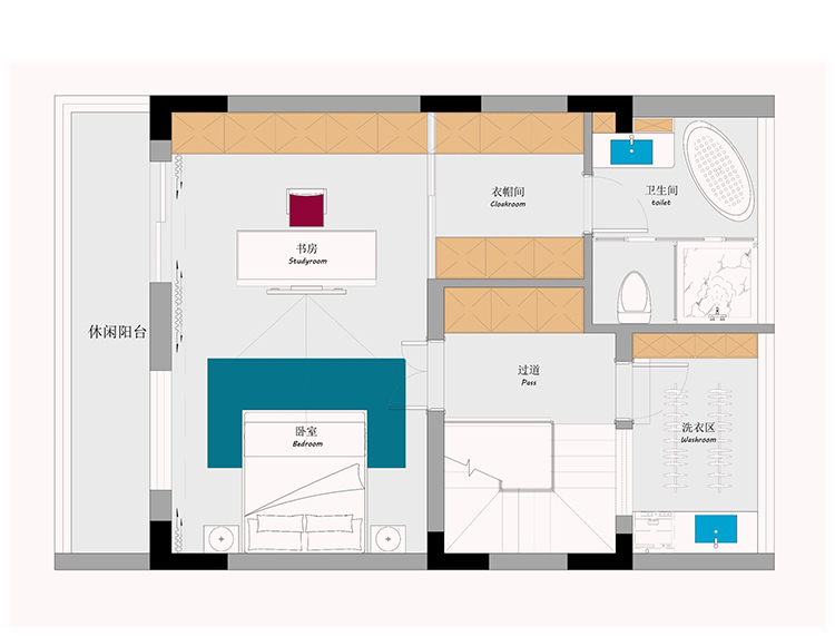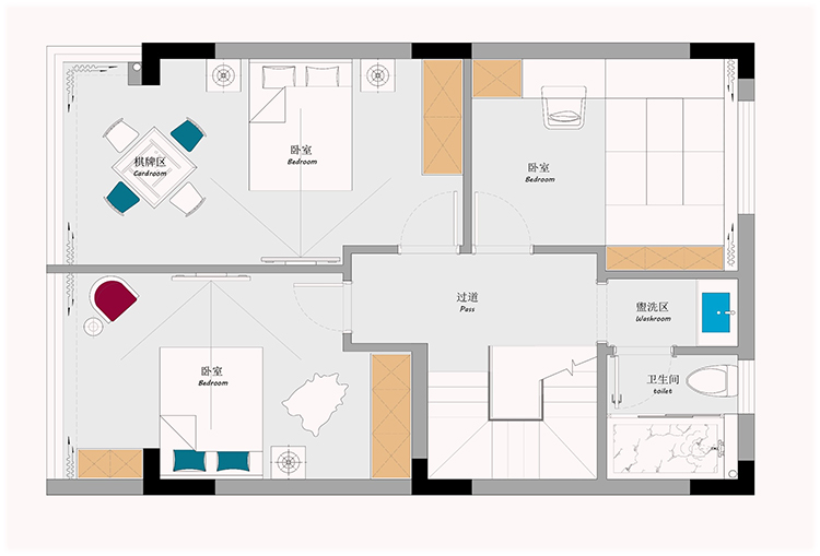 熙華府二層通過(guò)敲砌墻重新規(guī)劃,熙華府主臥設(shè)計(jì)成了一個(gè)大套房。按照客戶(hù)對(duì)臥室數(shù)量的需求,南面房間既可以作為書(shū)房來(lái)布置,也可以布置成次臥來(lái)使用,可以滿(mǎn)足業(yè)主4房的需求。如果作為書(shū)房使用,則北面房間與衛(wèi)生間打通,做一個(gè)有內(nèi)衛(wèi)的小套房。如果南面房間作為臥室使用,則保留原有公衛(wèi),北面房間作為一個(gè)兒童房來(lái)使用。