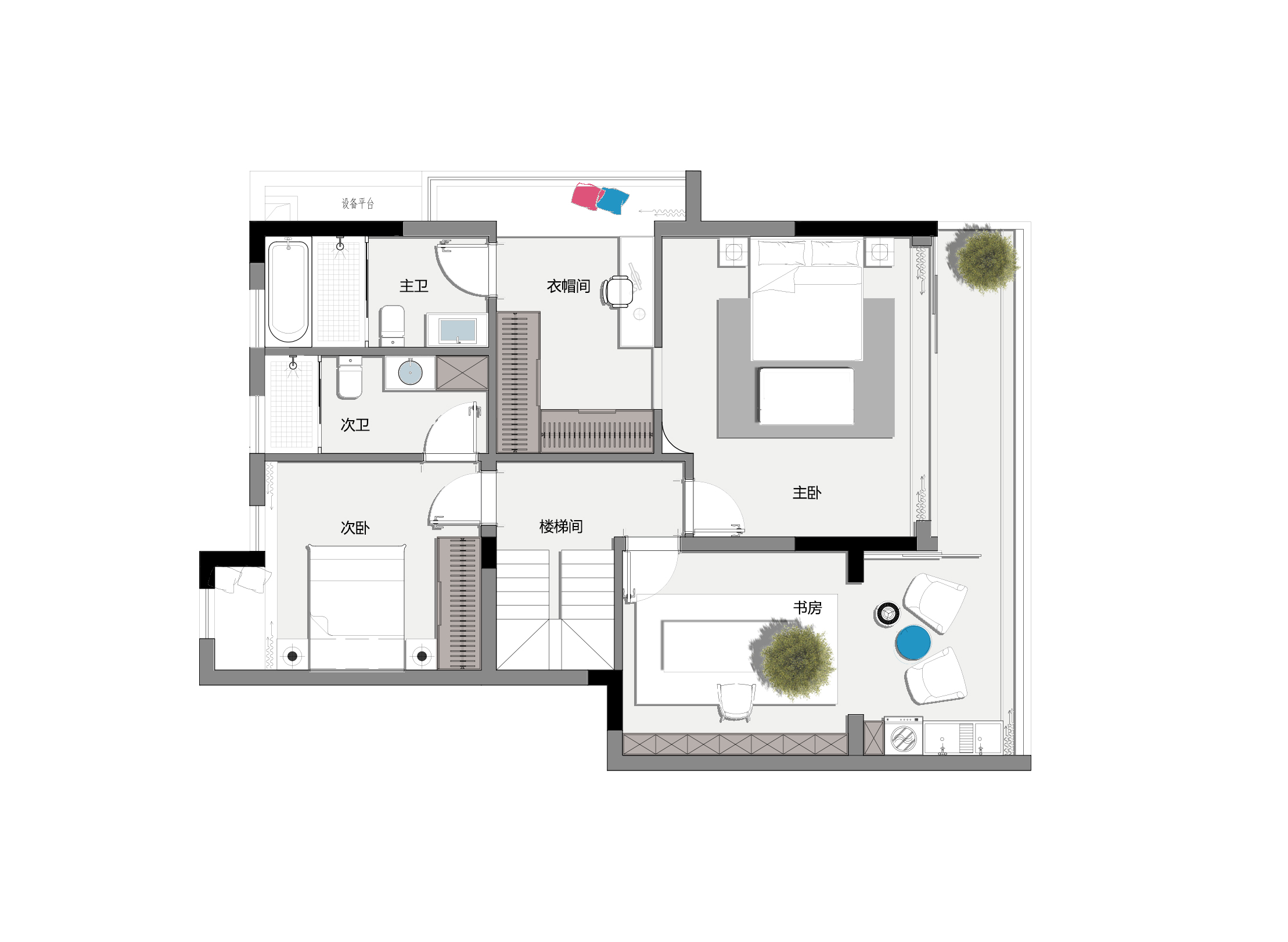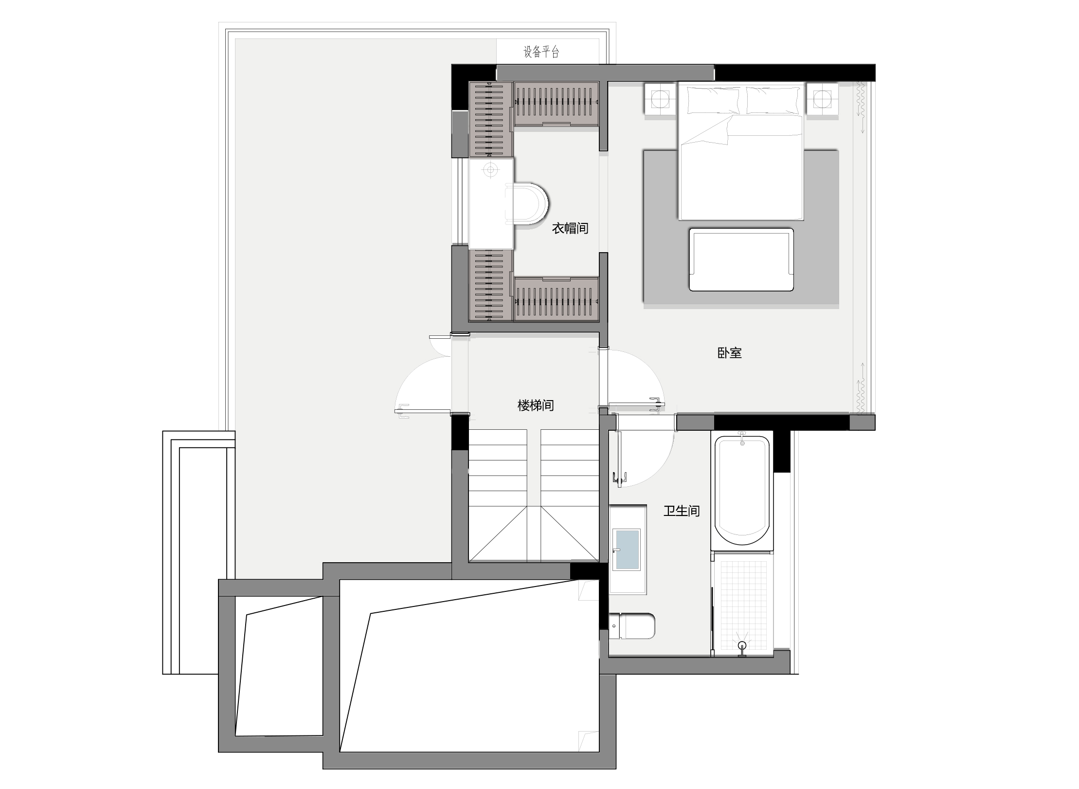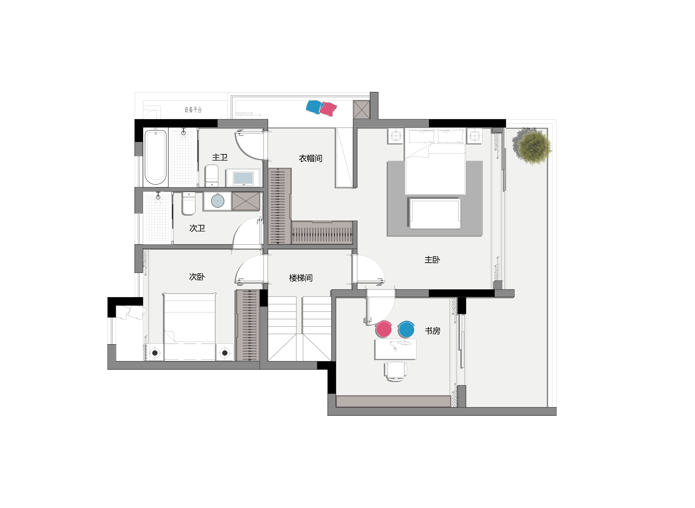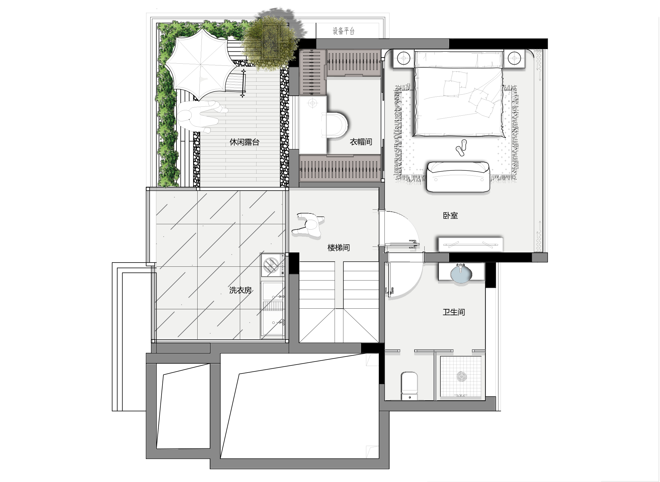 層做了一個(gè)主臥大套房,外面半露臺(tái),給主人居住很舒服