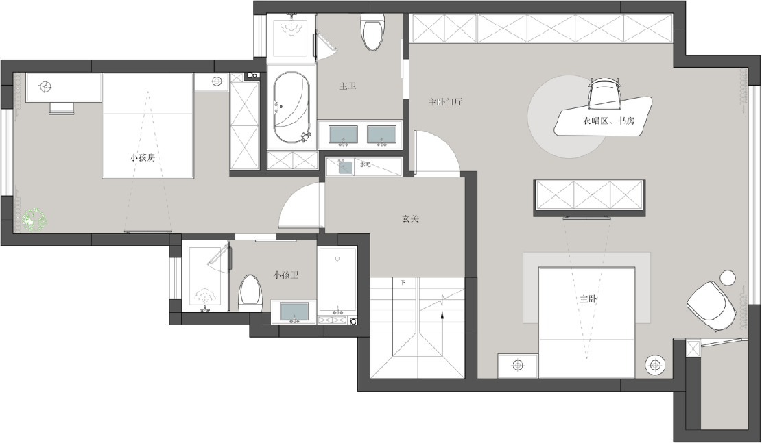 4?二樓作為主要的休息區(qū),是一個大套房和小套房,滿足了日常的人口居住需求,同時提升了生活品質(zhì)。