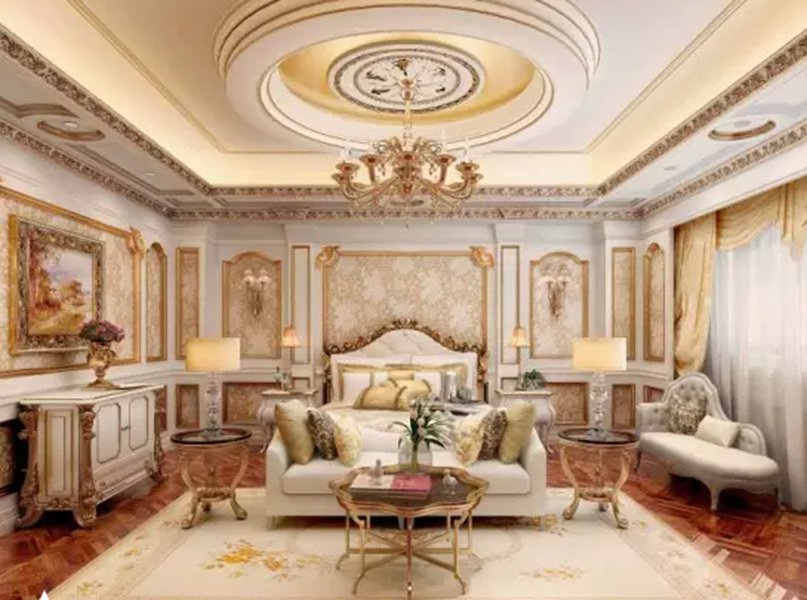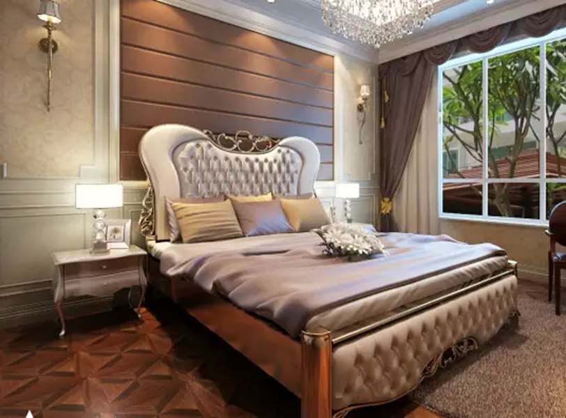 象牙白是溫和的顏色,它的浪漫和柔軟讓它與任何顏色的搭配與融合,都能創(chuàng)造出另一種全新的視覺感受,同時也絲毫不會弱化白色的效果。在這間臥房內(nèi),象牙白的運(yùn)用成為打造寧靜睡眠環(huán)境的最好選擇。墻壁與床頭在花式上的統(tǒng)一則將床體空間的睡眠氛圍無限延伸,整體素雅干凈簡單的視覺效果因為金黃色的加入而融入了一些奢華感。