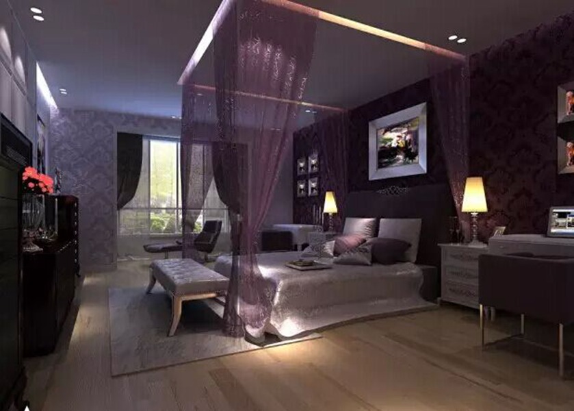 紫色是一個只要念到名字就覺得很夢幻溫馨的顏色,同色系的不同顏色也會隨著深淺的變化而呈現(xiàn)出多種多樣的曼妙感覺。比紫色淺一度,藕荷色的墻壁上可以隱約看到粉色的影子,纏纏綿綿的感覺撲面而來;比紫色深一度,玫紫色的床蓋溫馨柔軟。還有紫得濃烈的抱枕在一旁點綴。配合這種夢幻的顏色,一定要選擇那些中規(guī)中矩不跳脫的配色,比如家具的黑色,地板的原木色。