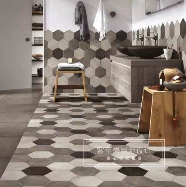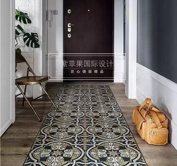 在經(jīng)常需要清潔的地方,如玄關(guān)位置,拼接瓷磚地板美觀又方便家務(wù)。