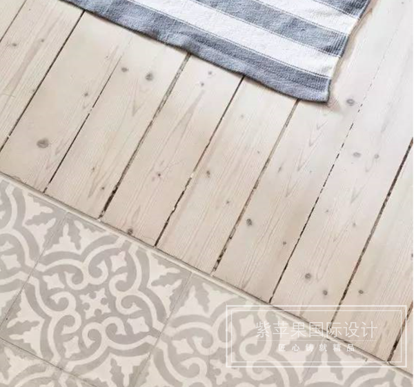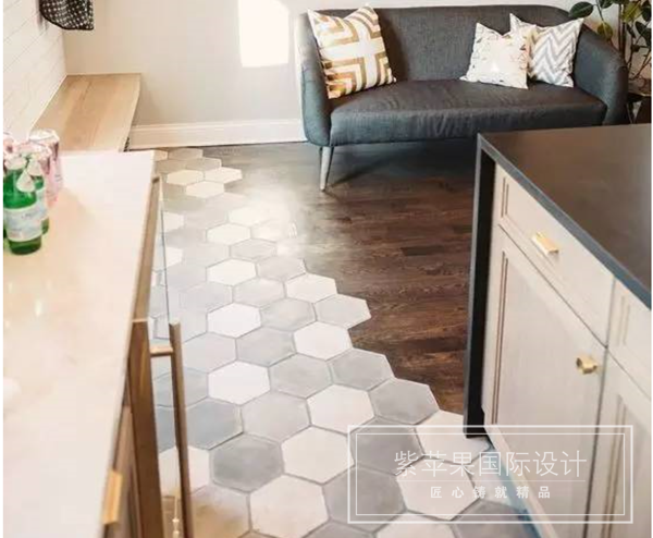 在客廳或餐廳沉重的大件家具底下拼接瓷磚代替木地板,能避免對(duì)木地板的磨損。