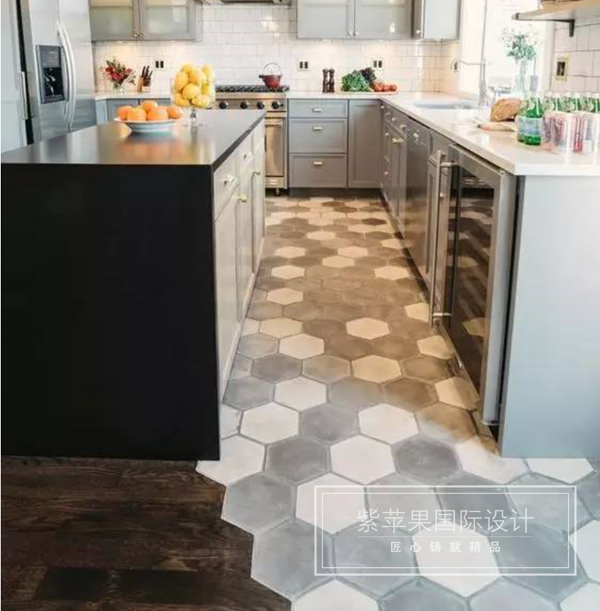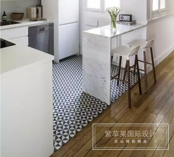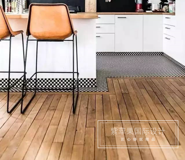 在開(kāi)放的空間里,鋪設(shè)不同的地面材料還能起到區(qū)分空間的作用。比如在開(kāi)放式的廚房+客廳里,用地磚來(lái)劃分廚房的區(qū)域,還可以避免昂貴的木地板受到廚房用品的侵蝕。